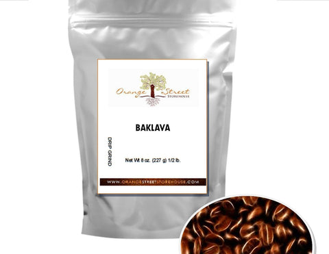 Baklava a mid 19th - century Turkish baked delicate pastry served only on special occasions. Layered with filo filled nuts infused with honey, maple walnuts and pistachio nuts. This Middle Eastern classic flavored coffee combines the smooth taste of honey, maple walnuts and pistachio nuts creating a great dessert coffee.